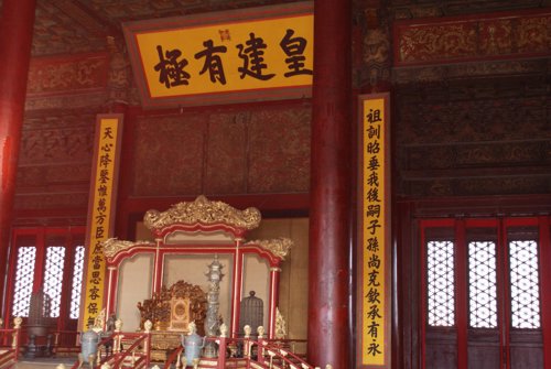 Inside the Hall of Supreme Harmony sits the emperor's throne...