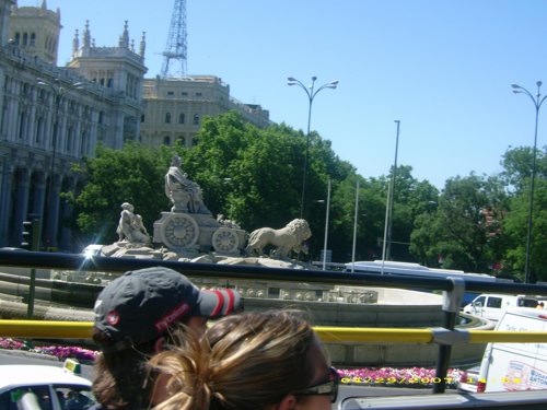 The sculpture depicts the goddess Cibeles (Cybele), the Phrygian goddess of fertility, who is seen sitting on a chariot and being pulled by two lions